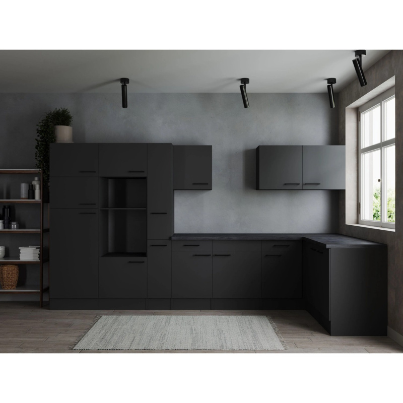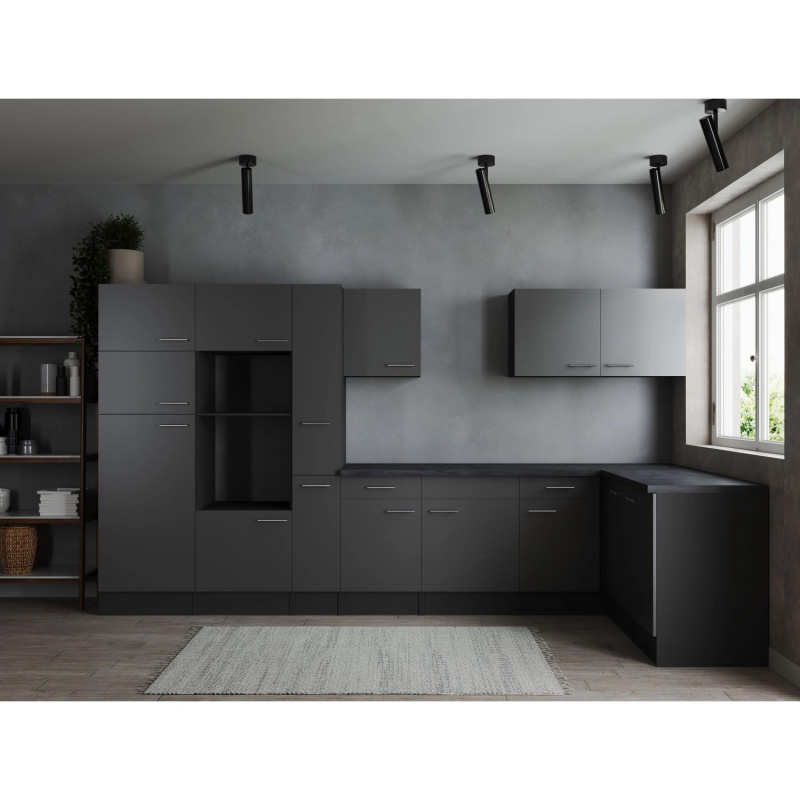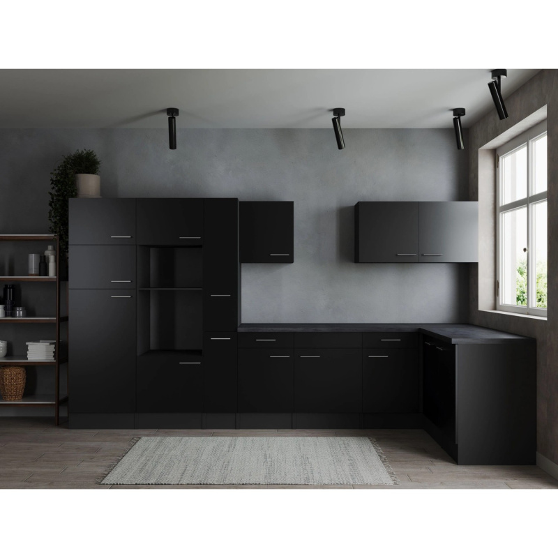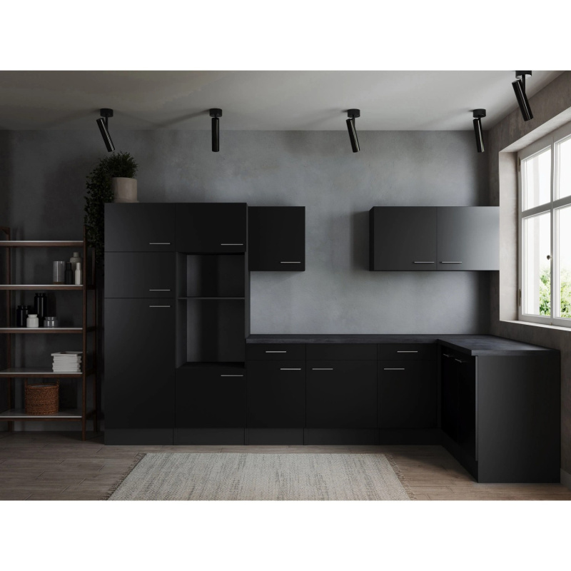 Respekta Kuchyně Oliver L černá/žula 370 cm - bez el. přístrojů