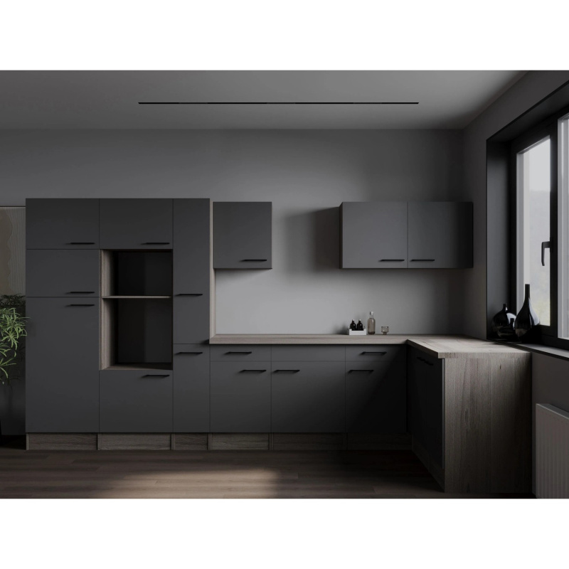 Respekta Kuchyně Oliver L šedá matná/dub York 370 cm - bez el. přístrojů