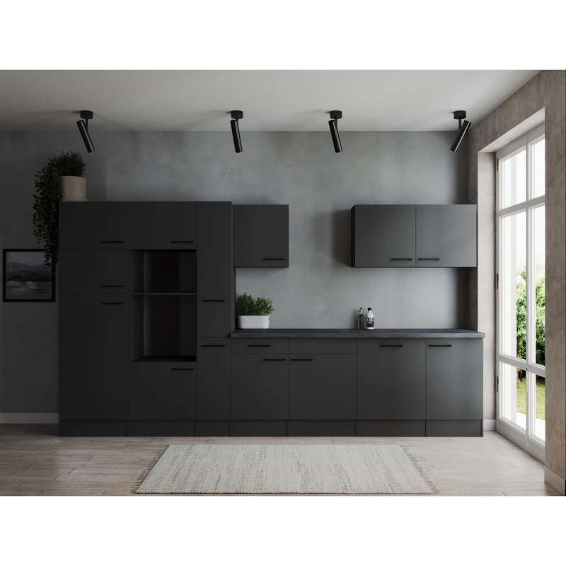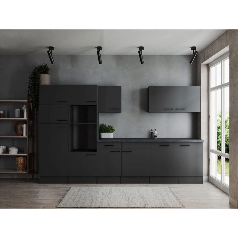 Respekta Kuchyně Oliver černá/žula 340 cm - bez el. přístrojů
