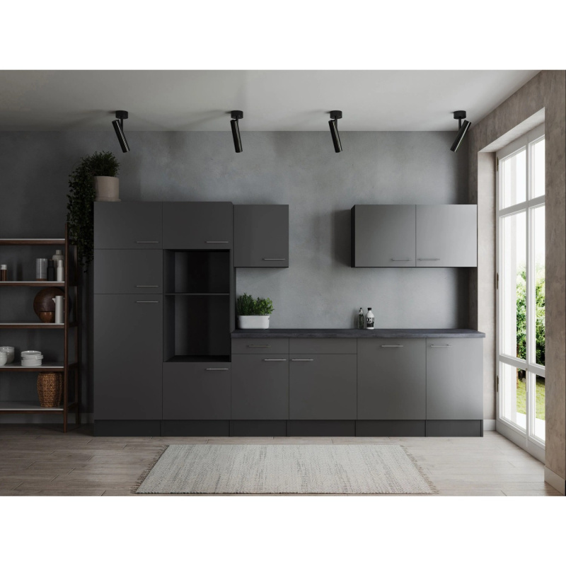 Respekta Kuchyně Oliver šedá matná/žula 370 cm - bez el. přístrojů