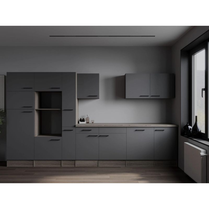 Respekta Kuchyně Oliver šedá matná/dub York 370 cm - bez el. přístrojů