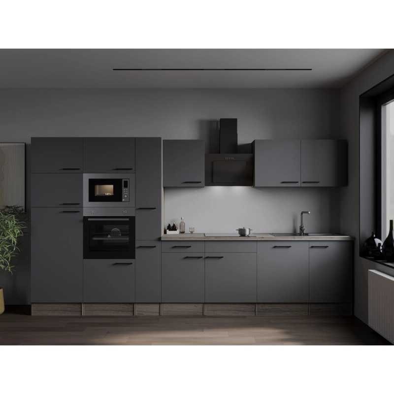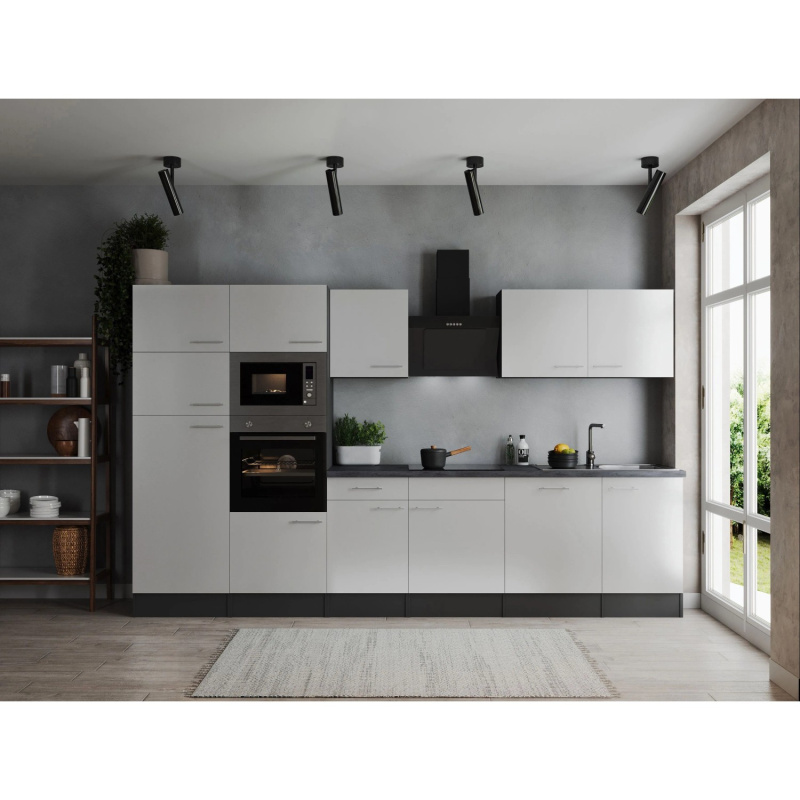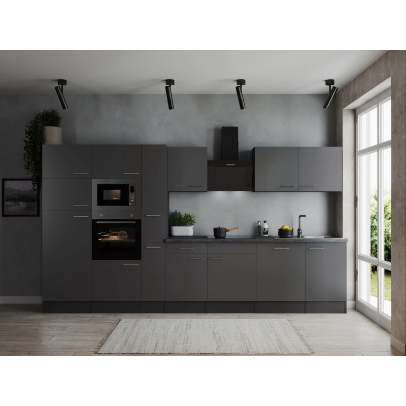 Respekta Kuchyně Oliver šedá/žula 370 cm-trouba/skl.deska/dig./myčka/led./mik.