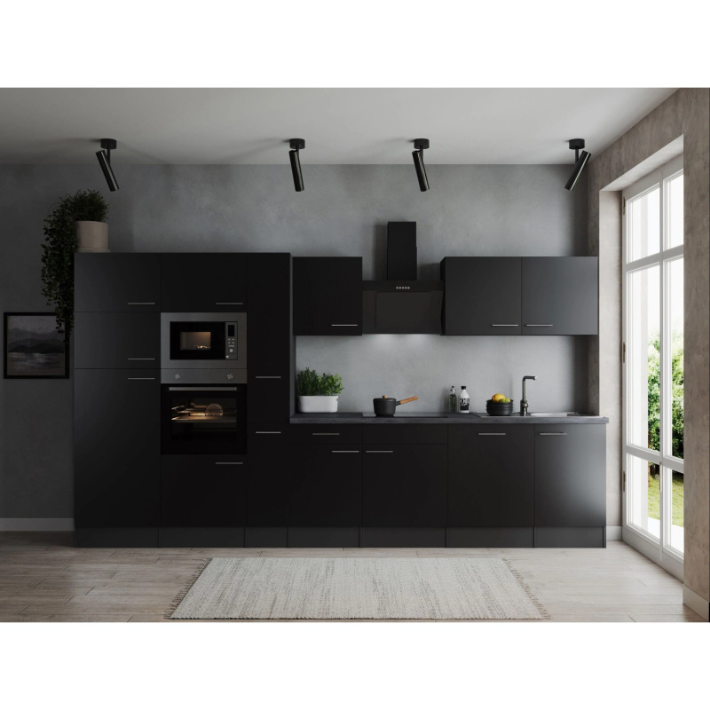 Respekta Kuchyně Oliver černá/žula 370 cm-trouba/skl.deska/dig./myčka/led./mik.