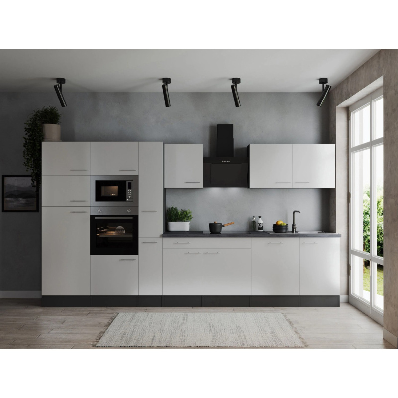 Respekta Kuchyně Oliver bílá/žula 370 cm-trouba/skl.deska/dig./myčka/led./mik.