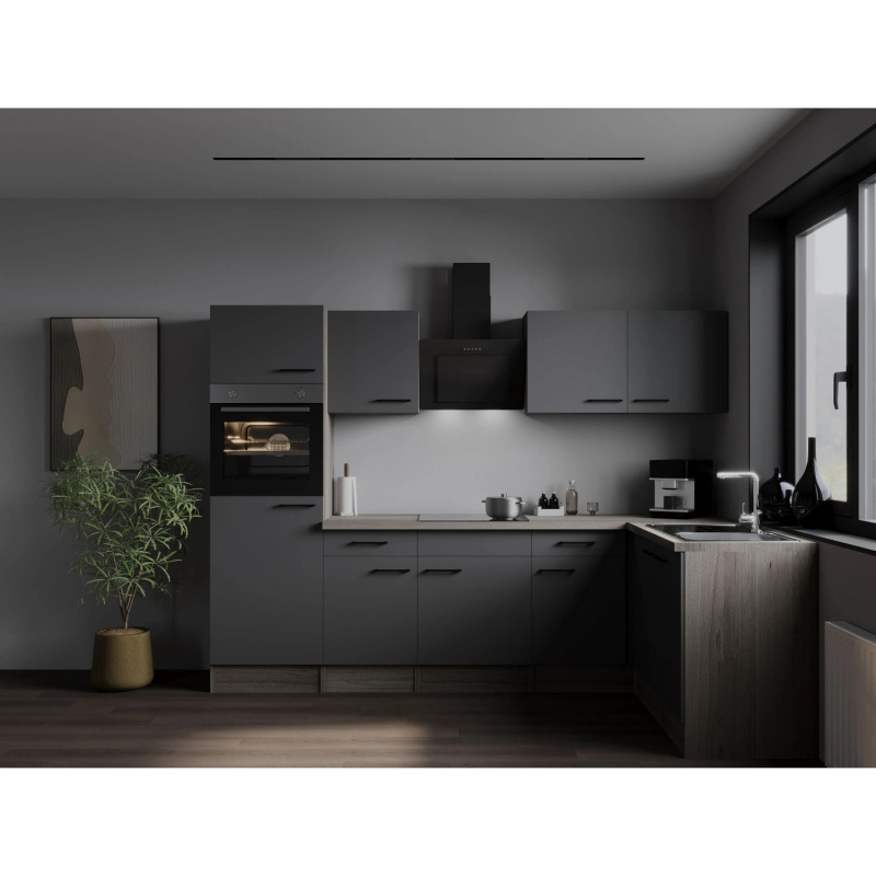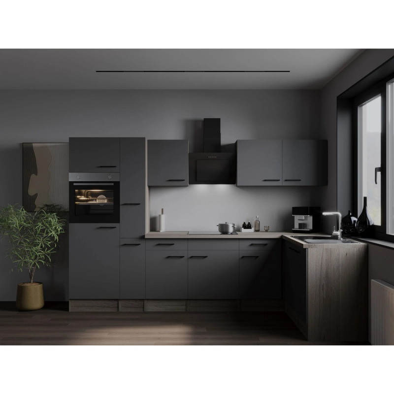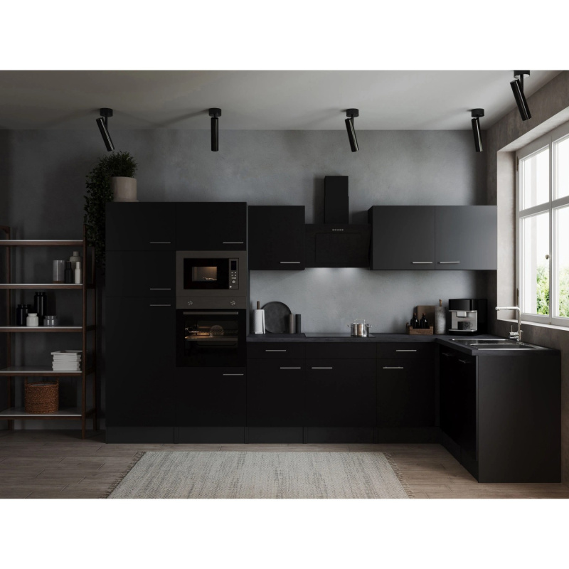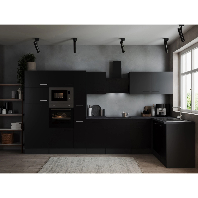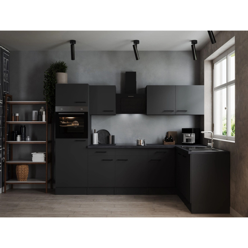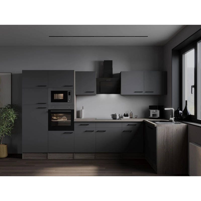 Respekta Kuchyně Oliver L černá/žula 310 cm-trouba/skl.deska/dig./myčka/led.