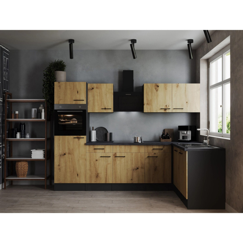 Respekta Kuchyně Oliver L dub/žula 280 cm-trouba/skl.deska/dig./myčka/led.
