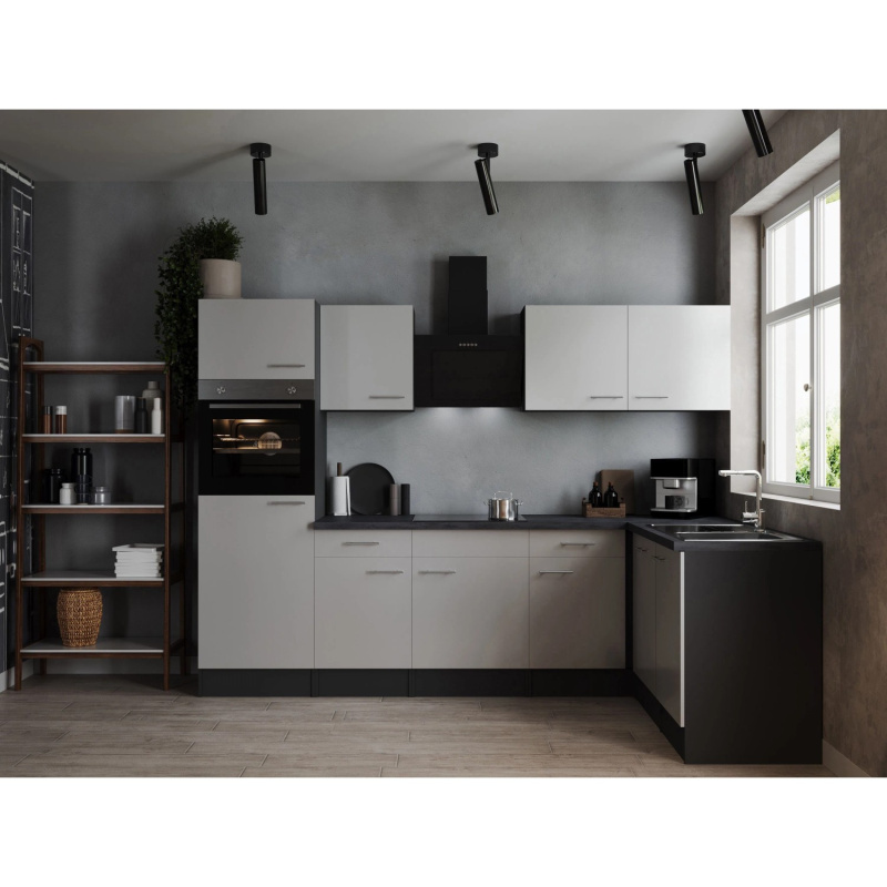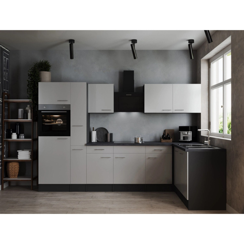 Respekta Kuchyně Oliver L šedá/žula 310 cm-trouba/skl.deska/dig./myčka/led.
