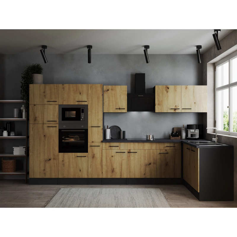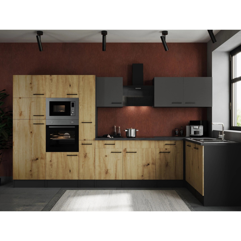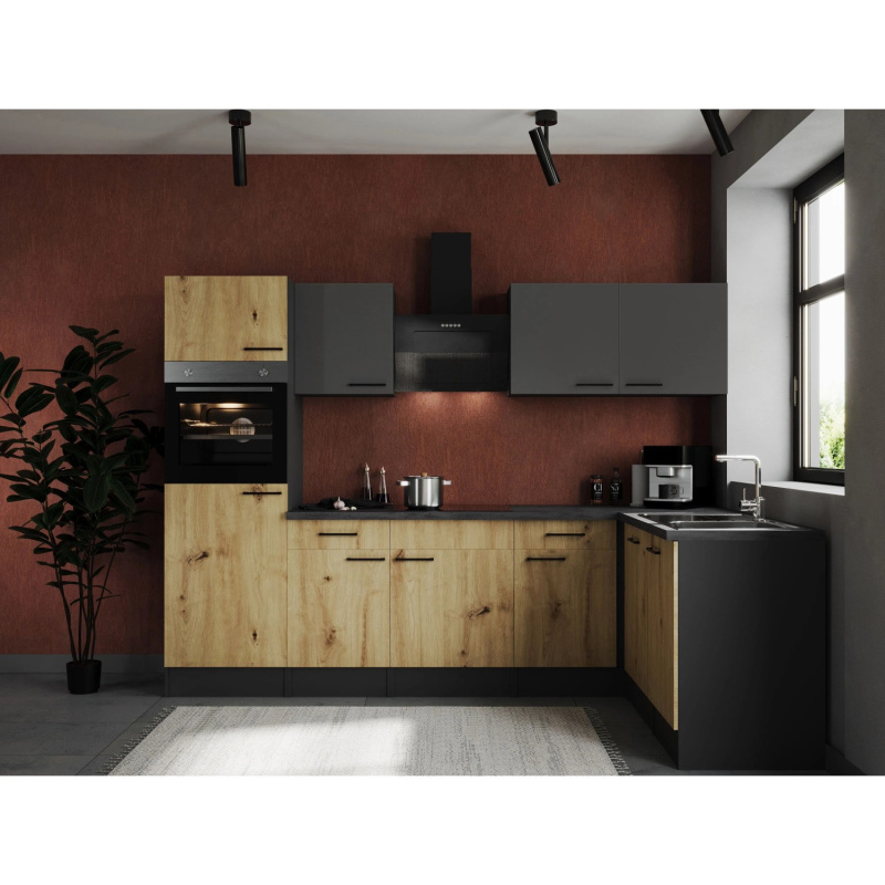 Respekta Kuchyně Oliver L dub/žula 310 cm-trouba/skl.deska/dig./myčka/led.