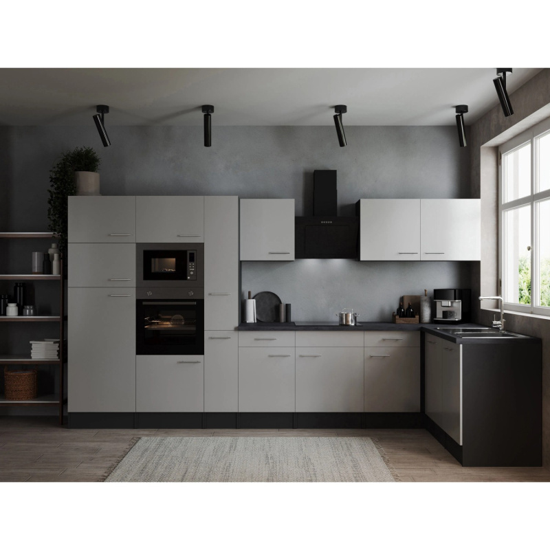 Respekta Kuchyně Oliver L šedá/žula 370 cm-trouba/skl.deska/dig./myčka/led./mik.