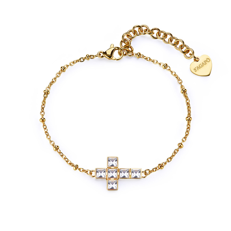 S'Agapõ Slušivý pozlacený náramek s křížkem Arcadia SRD14
