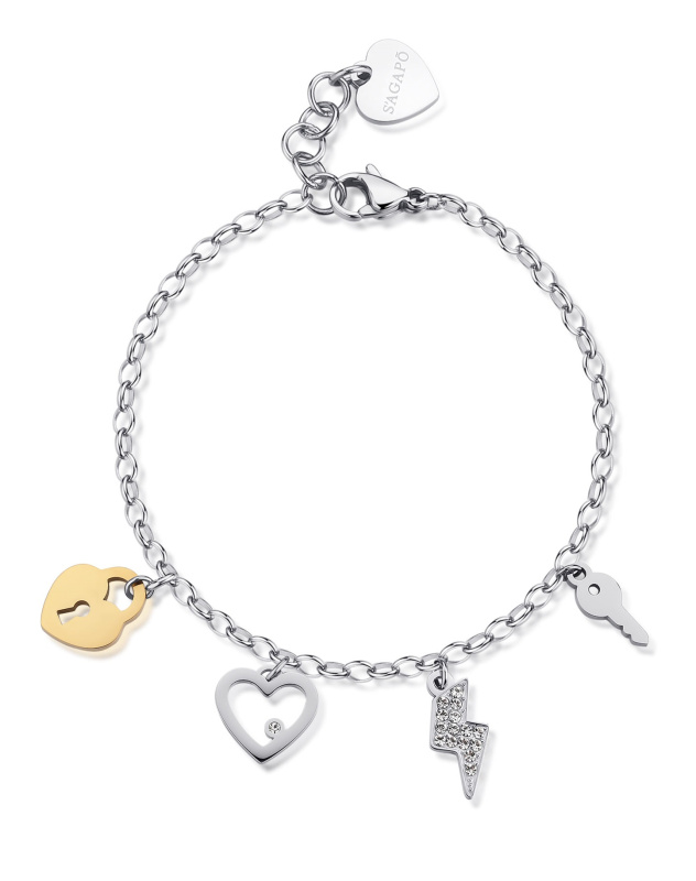 S'Agapõ Romantický ocelový náramek s přívěsky Message SSG32