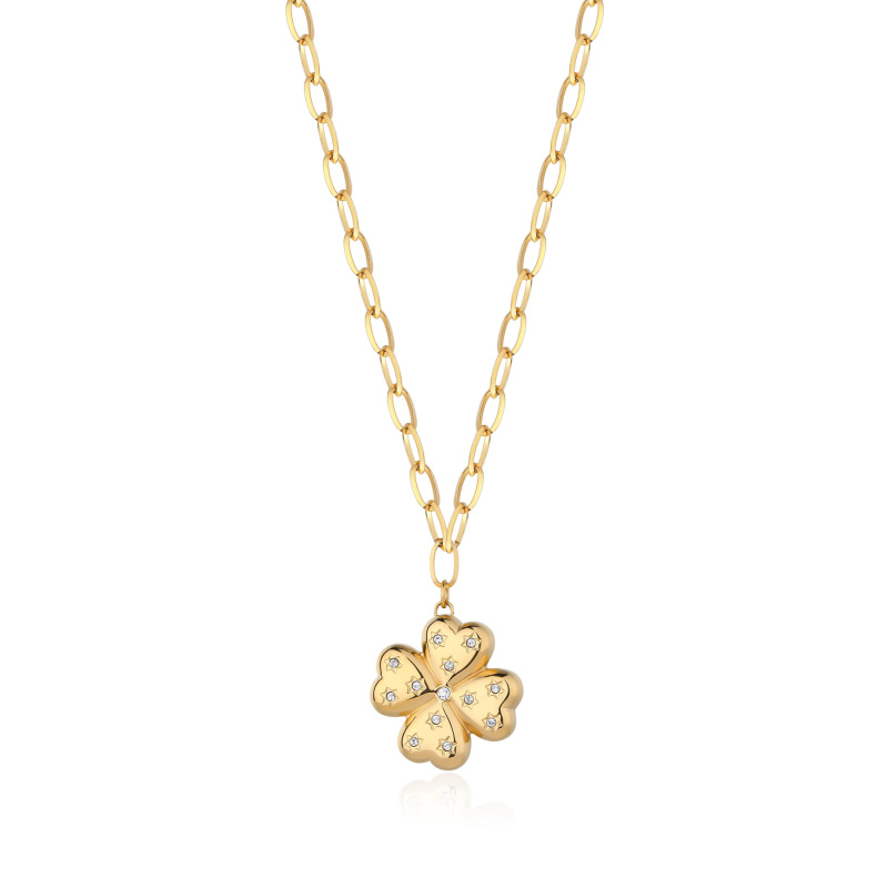 S'Agapõ Pozlacený náhrdelník Čtyřlístek s krystaly Stellar SSE07