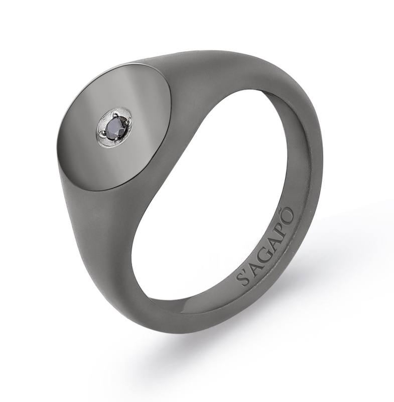 S'Agapõ Výrazný ocelový prsten s černým zirkonem Tag Me Too STG32 61 mm