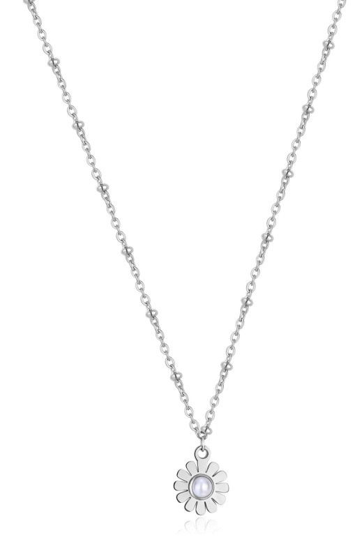 S'Agapõ Ocelový náhrdelník Kytička s perlou Message SSG25