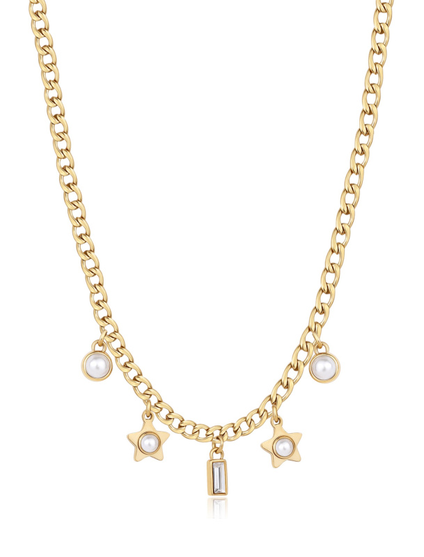 S'Agapõ Půvabný pozlacený náhrdelník Hvězda s krystalem Click SCK06