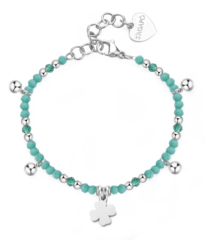 S'Agapõ Korálkový náramek s přívěsky Čtyřlístek Glint SGI14