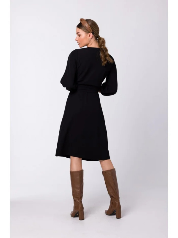 S325 Přiléhavé šaty s vázaným výstřihem - černé EU XL