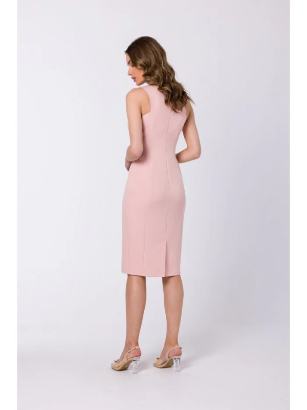 S342 Pouzdrové šaty bez rukávů - pudrové EU L