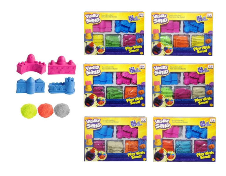 Kinetický písek – sada 3 barev s formičkami na hrad
