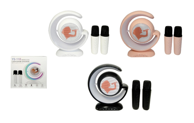 Bezdrátová karaoke sada s půlměsícovým reproduktorem a 2 mikrofony