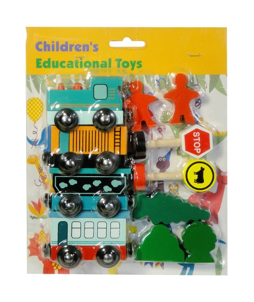 Dřevěná vlaková souprava s vagónky a doplňky