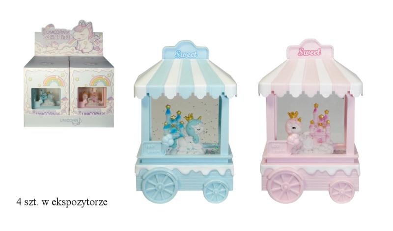 Lucírna s vířícím třpytem na baterie – kočárek s jednorožcem