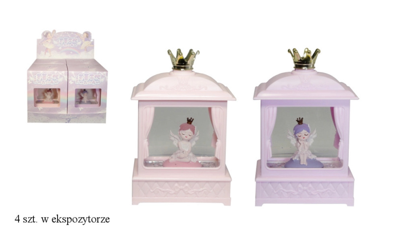 Noční lampička s rotujícím třpytkem a hrací skříňkou na baterie