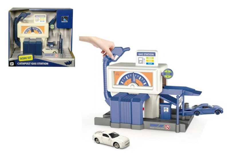 Benzínová stanice s vystřelovačem autíčka