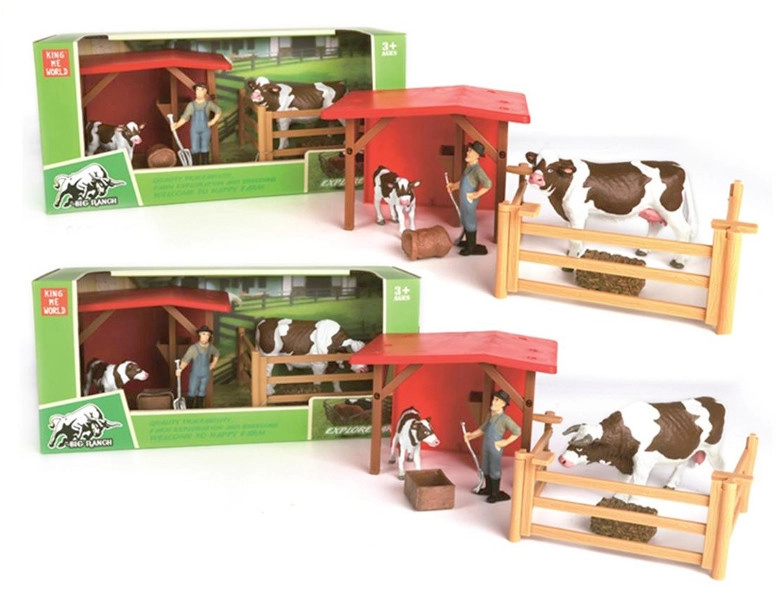 Sada farmářská ohrada s kravami a farmářem