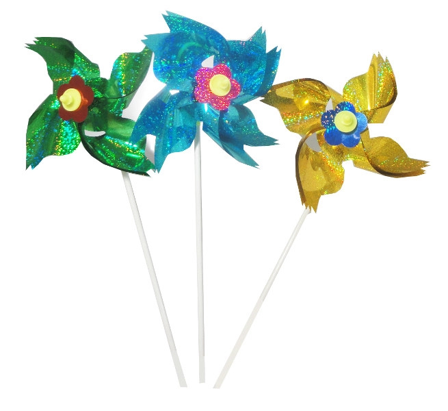 Barevný větrníček ve tvaru slunečnice na plastové tyčce