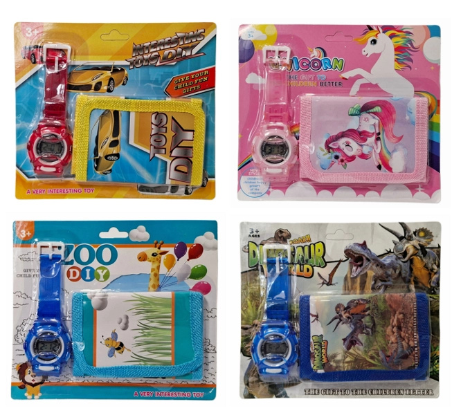 dětská sada peněženka a hodinky s motivy zvířat, aut a jednorožců