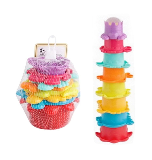 Koupací hračka 2v1 – barevné kelímky a věž
