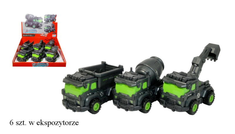 Stavební auta s natahovacím pohonem, 6 ks