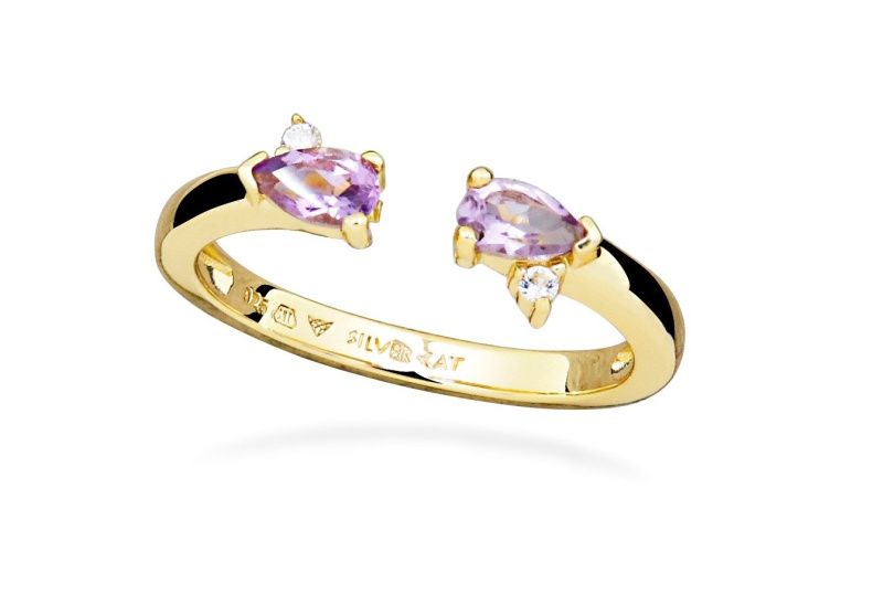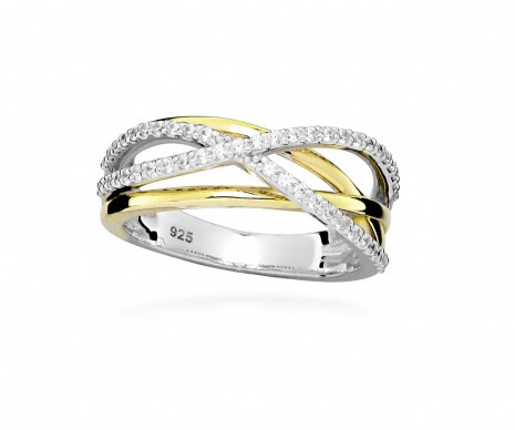 Silver Cat Otevřený pozlacený prsten s kubickými zirkony SC639 60 mm