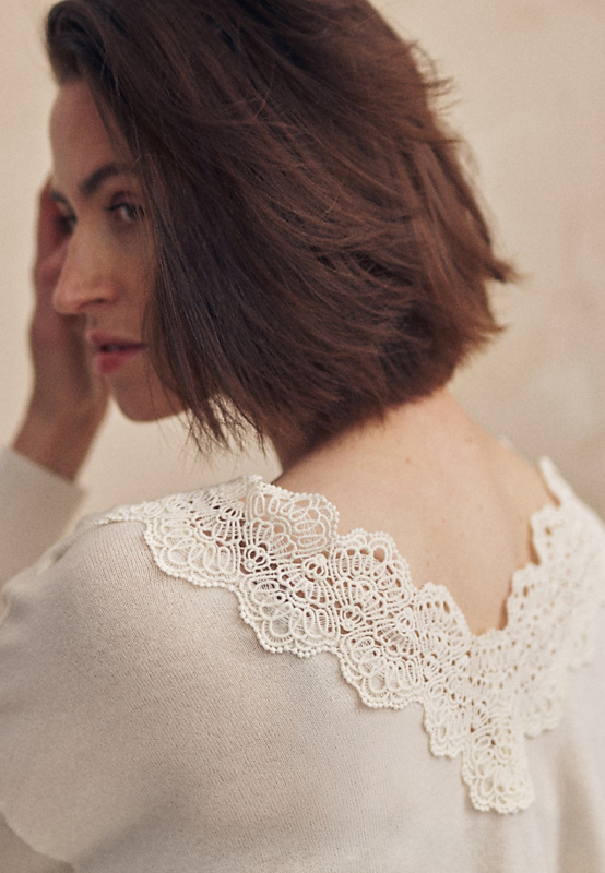 Ecru vlněný svetr s krajkou Elwira Tatuum