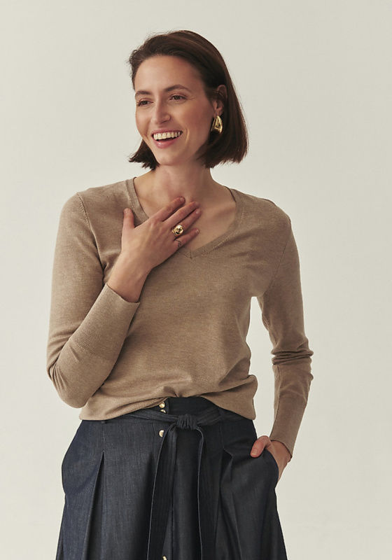Béžový klasický svetr s výstřihem do V