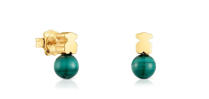 Tous Pozlacené náušnice s malachitem Icon Mesh 1004503700