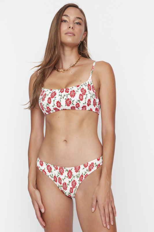 Trendyol Bílý květinový vzorovaný gype bikiny spodní díl