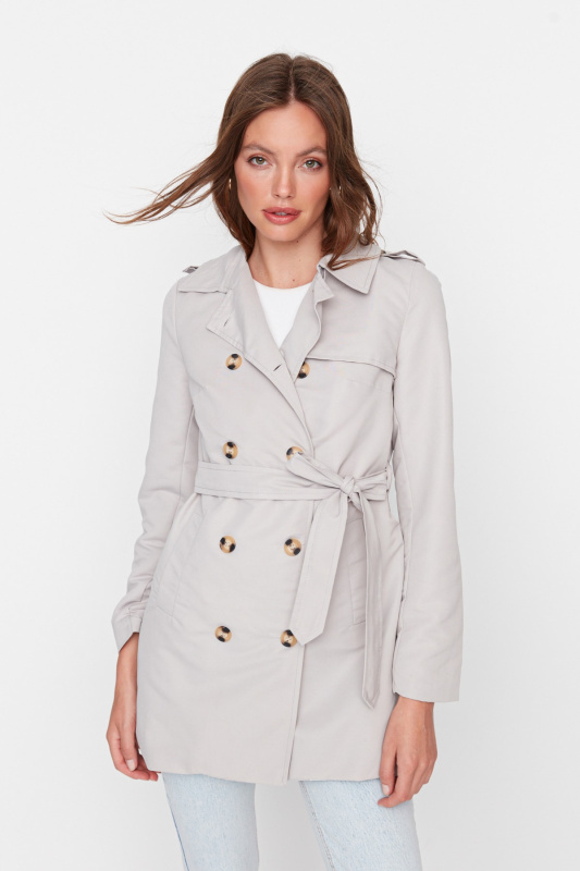 Trenčkot Trendyol Stone Beltted Button Closure Fit Fit