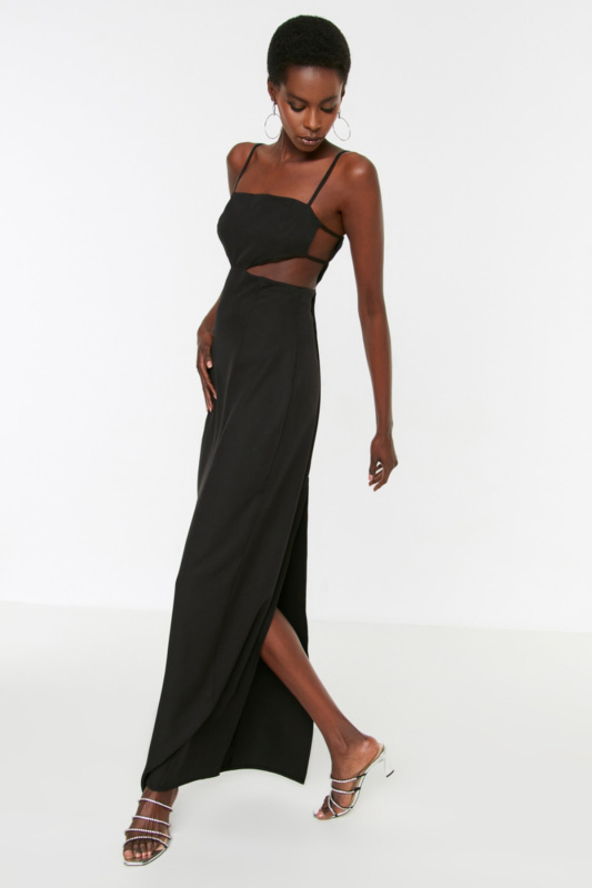 Trendyol černý pas detailní dlouhé večerní večerní šaty