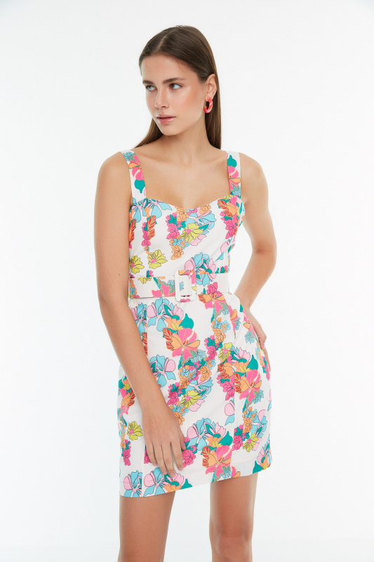 Trendyol bílé květinové vzory páskové tkané šaty