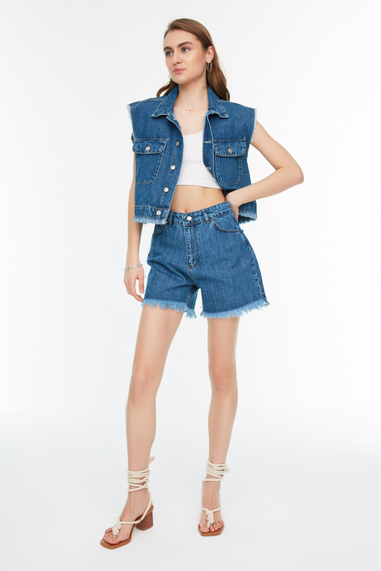 Trendyol modré džínové šortky s třásněmi