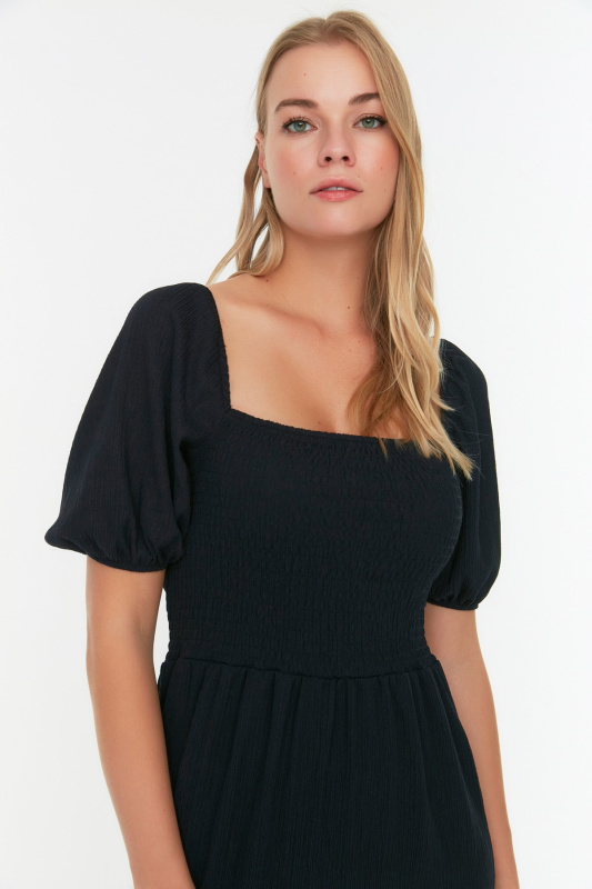Trendyol Curve černé tvídové šaty