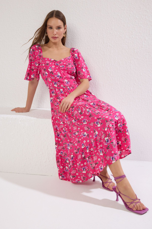 Trendyol Fuchsia Pocket Detailed High Waist Wide Leg Jeans Pants