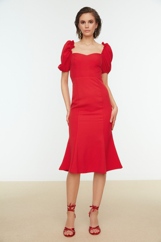 Trendyol žlutá sukně volánková tkaná brode zadní detail mini tkané šaty