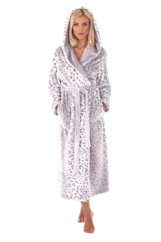 Dámský župan 3956 irbis s kapucí vzorovaný - Vestis šedo-bílá XL