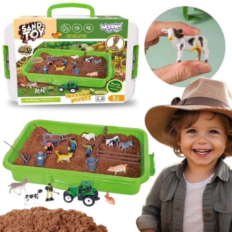 Woopie kinetický písek Farma v kufříku 1500 g s traktorem a zvířaty