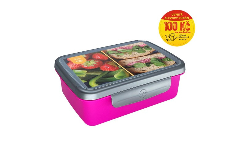 R&B Svačinový box Zdravá sváča - Recepty FLUO fialová/nerez
