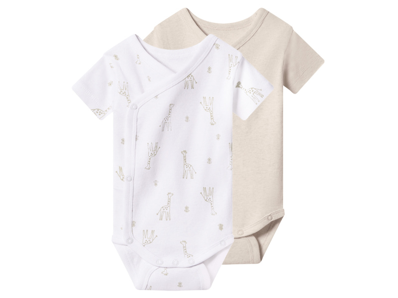 lupilu® Dětské zavinovací body s BIO bavlnou, 2 kusy (bílá/béžová, 74/80)