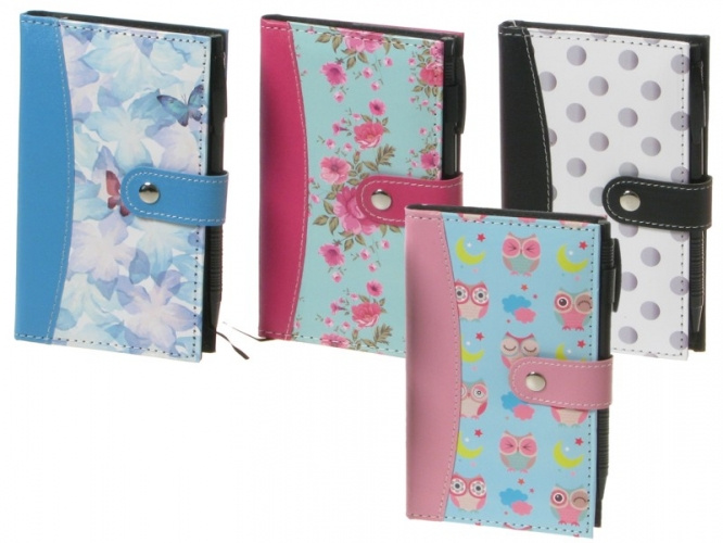 Blok se zapínáním 9,5 x 15,5 cm linka, 100 listů, mix motivů